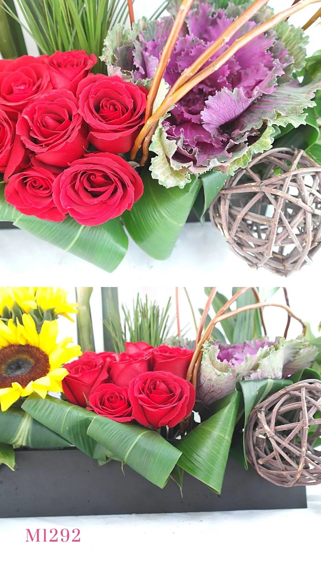 Inmersión: Celebra la belleza de la naturaleza con nuestro Arreglo de Girasoles Festiva Rodam, diseñado en una elegante base de madera. Este arreglo combina la luminosidad de los girasoles con la pasión de las rosas y la exuberancia de los anturios, creando una obra maestra floral que iluminará cualquier espacio.