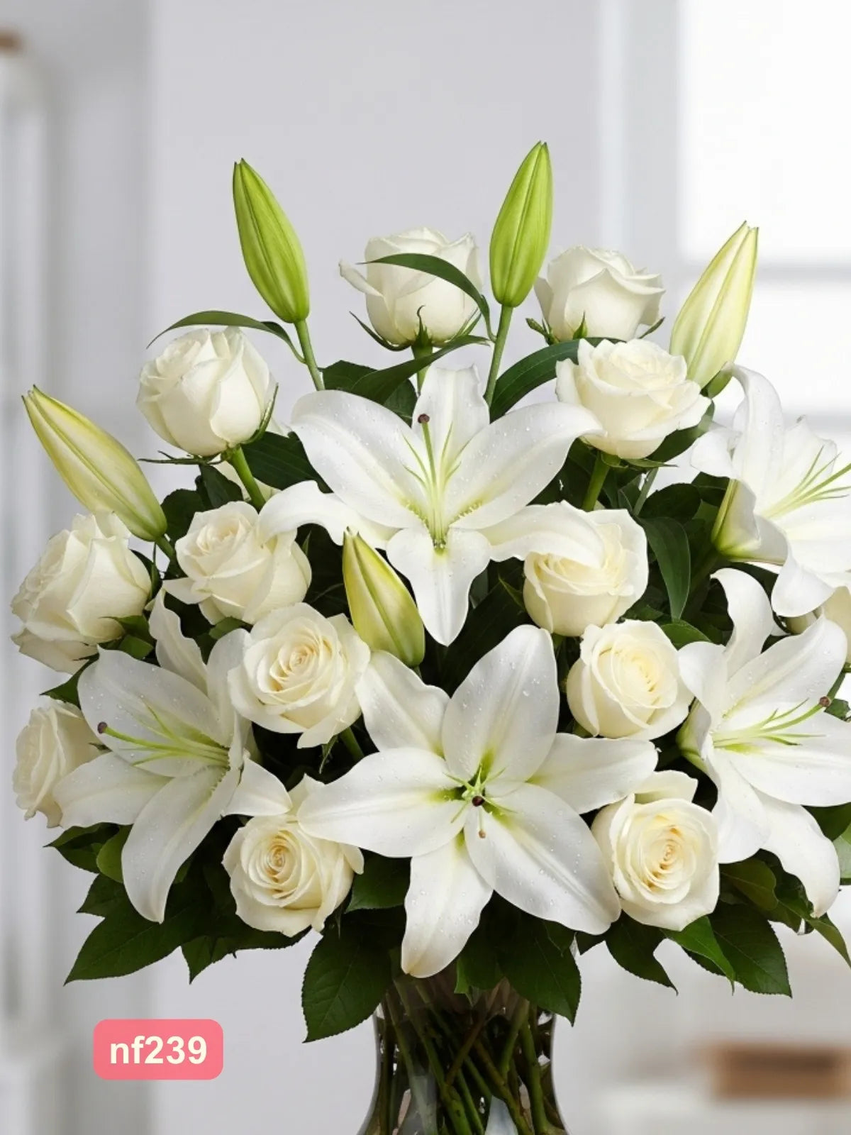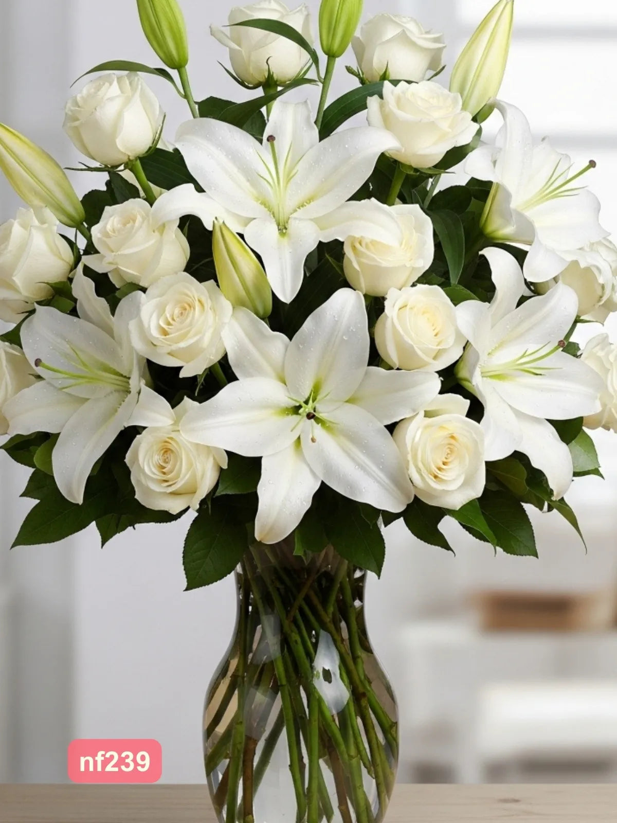 Existen combinaciones florales que definen el lujo y la elegancia, y el dúo de lirios Casablanca y rosas blancas es, sin duda, la más icónica. Este arreglo es una declaración de pureza, respeto y admiración, diseñado para momentos que exigen una belleza inolvidable y un gusto impecable.