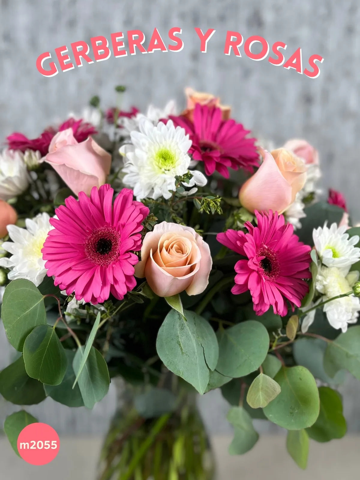 Un arreglo elegante y alegre que combina gerberas fucsia llenas de energía, rosas claras que transmiten ternura y radots blancos que aportan luz y equilibrio. Su composición vertical en florero de vidrio lo hace ideal para colocar en mesas, escritorios o recibidores sin ocupar demasiado espacio, pero destacando con presencia.