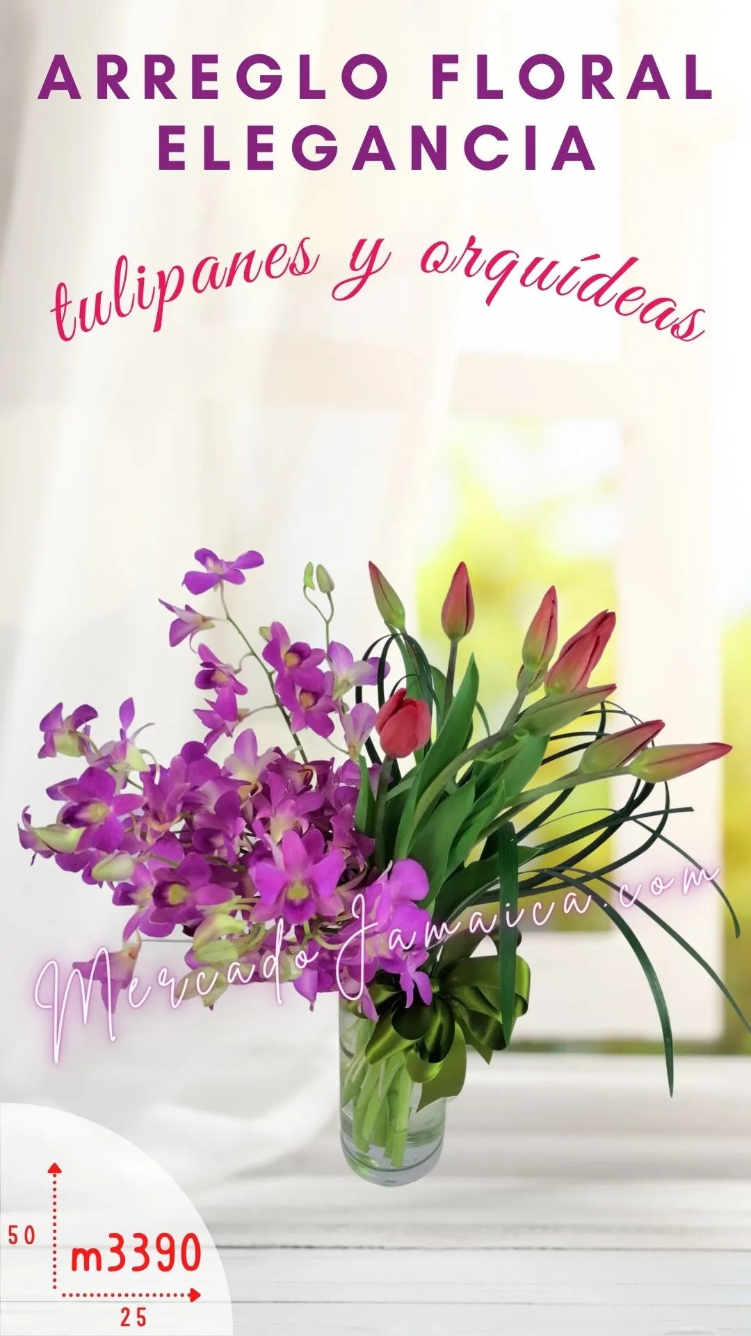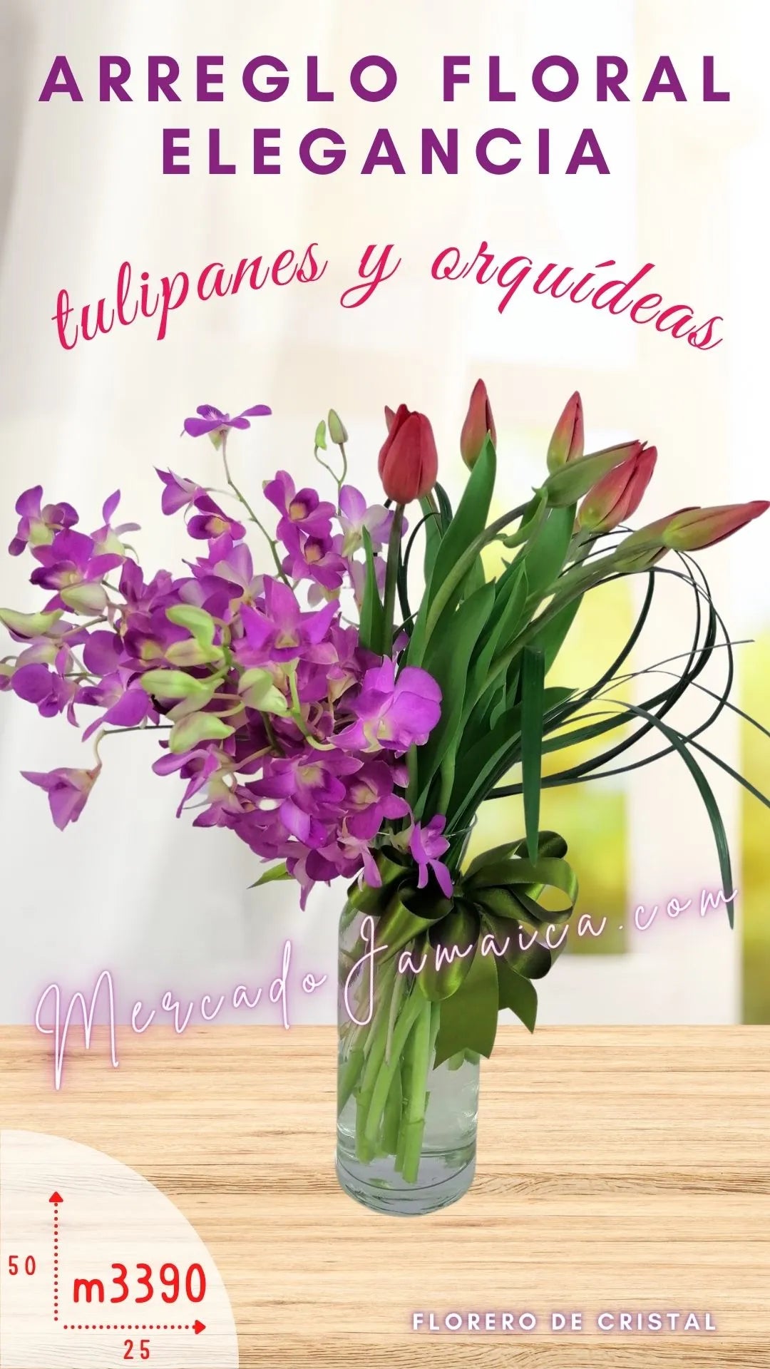 Combina la pasión de los tulipanes rojos con la delicadeza de las orquídeas lila en un elegante arreglo floral. Presentado en un florero de cristal fino, este conjunto es una declaración de amor y aprecio, perfecta para cualquier ocasión especial.