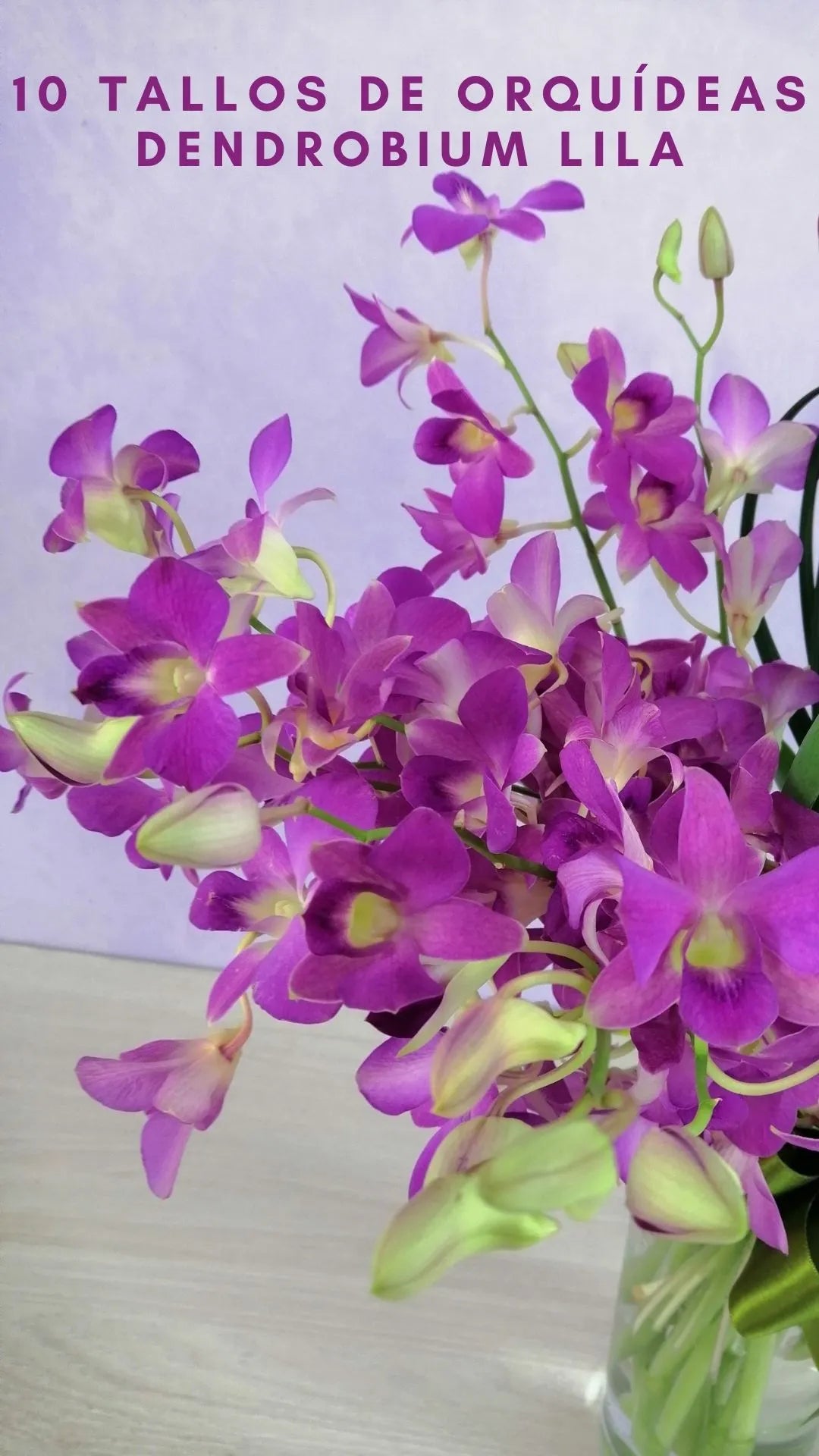 Orquídeas Dendrobium Lila Grandes: Estas orquídeas, conocidas por su belleza y elegancia, añaden un toque de sofisticación al arreglo.