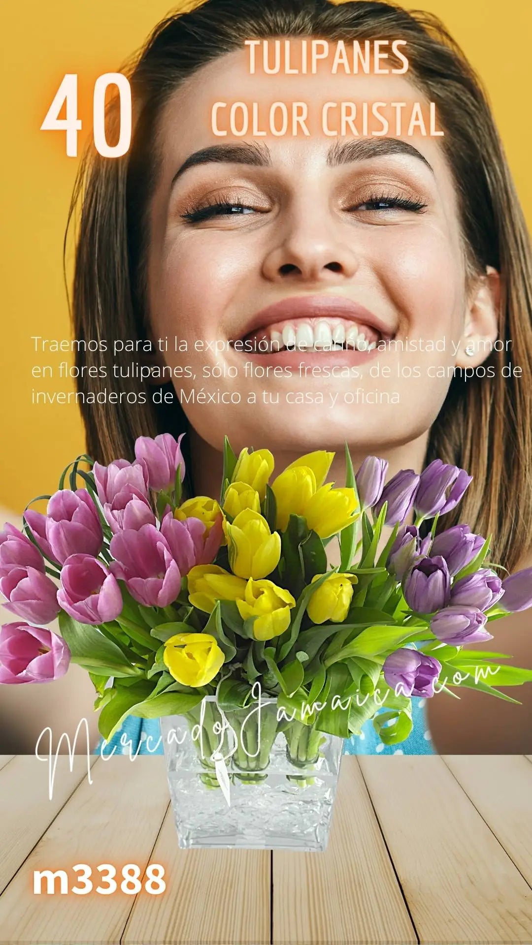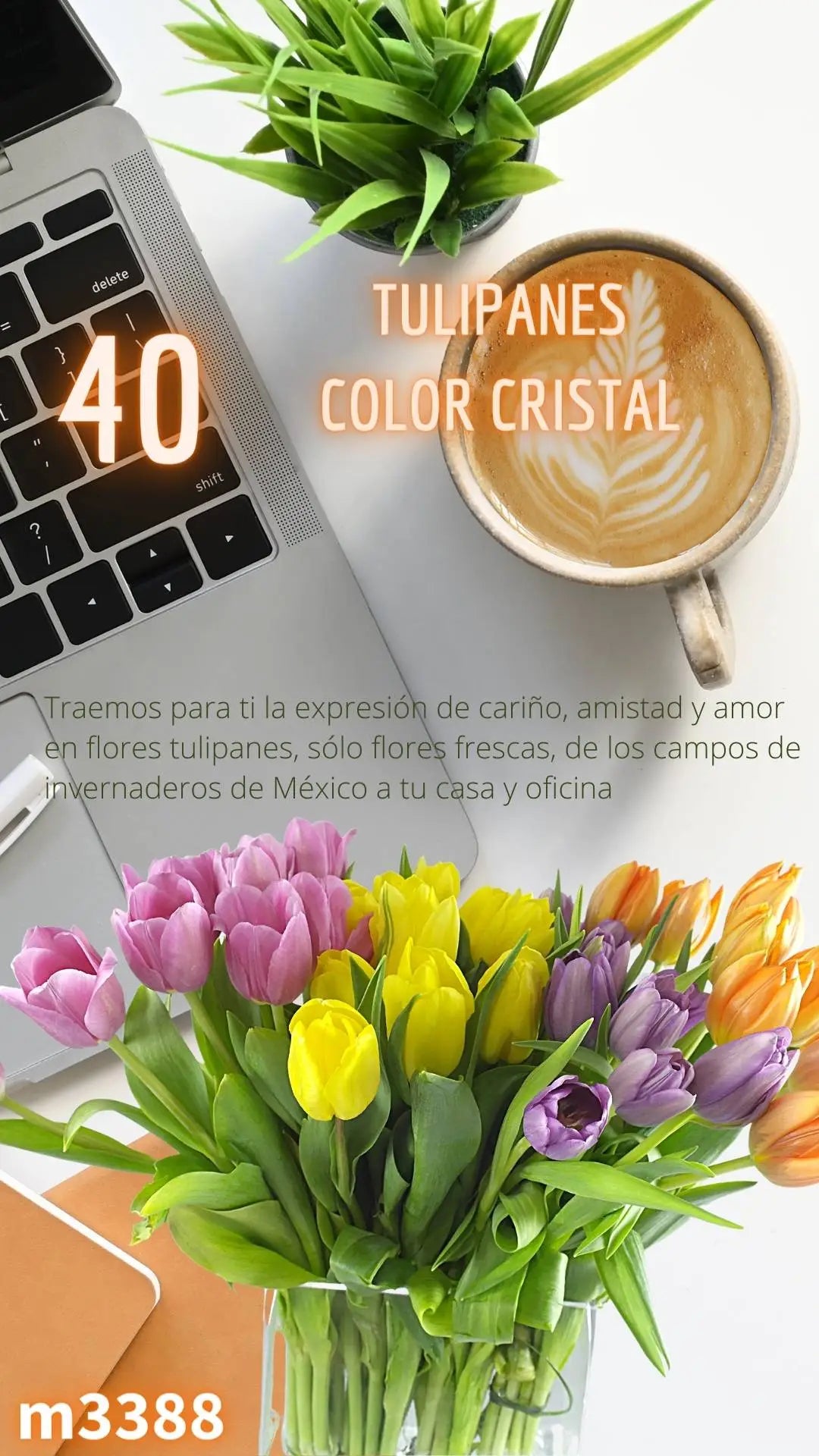 Deja que la naturaleza hable por ti con el Arreglo de 40 Tulipanes Multicolor. ¡Haz tu pedido hoy y siembra esperanza!