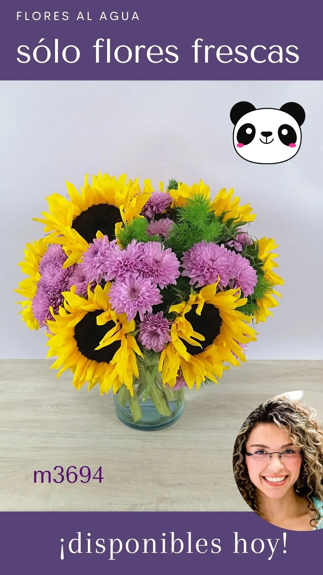 Acerca a tus seres queridos con la belleza de la naturaleza. Regala nuestro Arreglo 6 Girasoles y Flores Lila, que inspira y une a través de sus tonos suaves y formas delicadas.