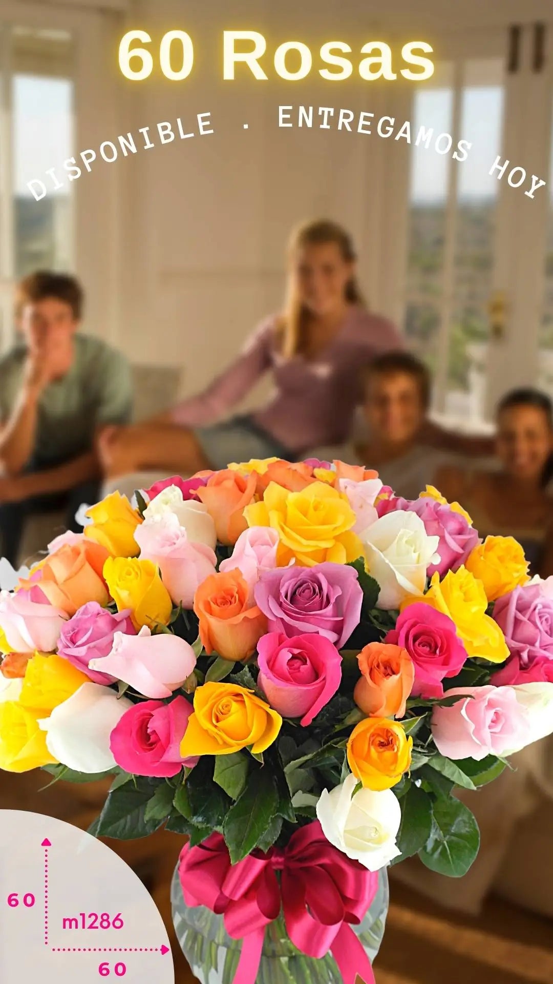 ¿Quieres enviar un mensaje especial lleno de color y alegría? Elige el Arreglo con 60 Rosas de Color y sorprende a tus seres queridos en ocasiones especiales como cumpleaños, aniversarios o simplemente para expresar tu amor. ¡Haz tu pedido hoy mismo!