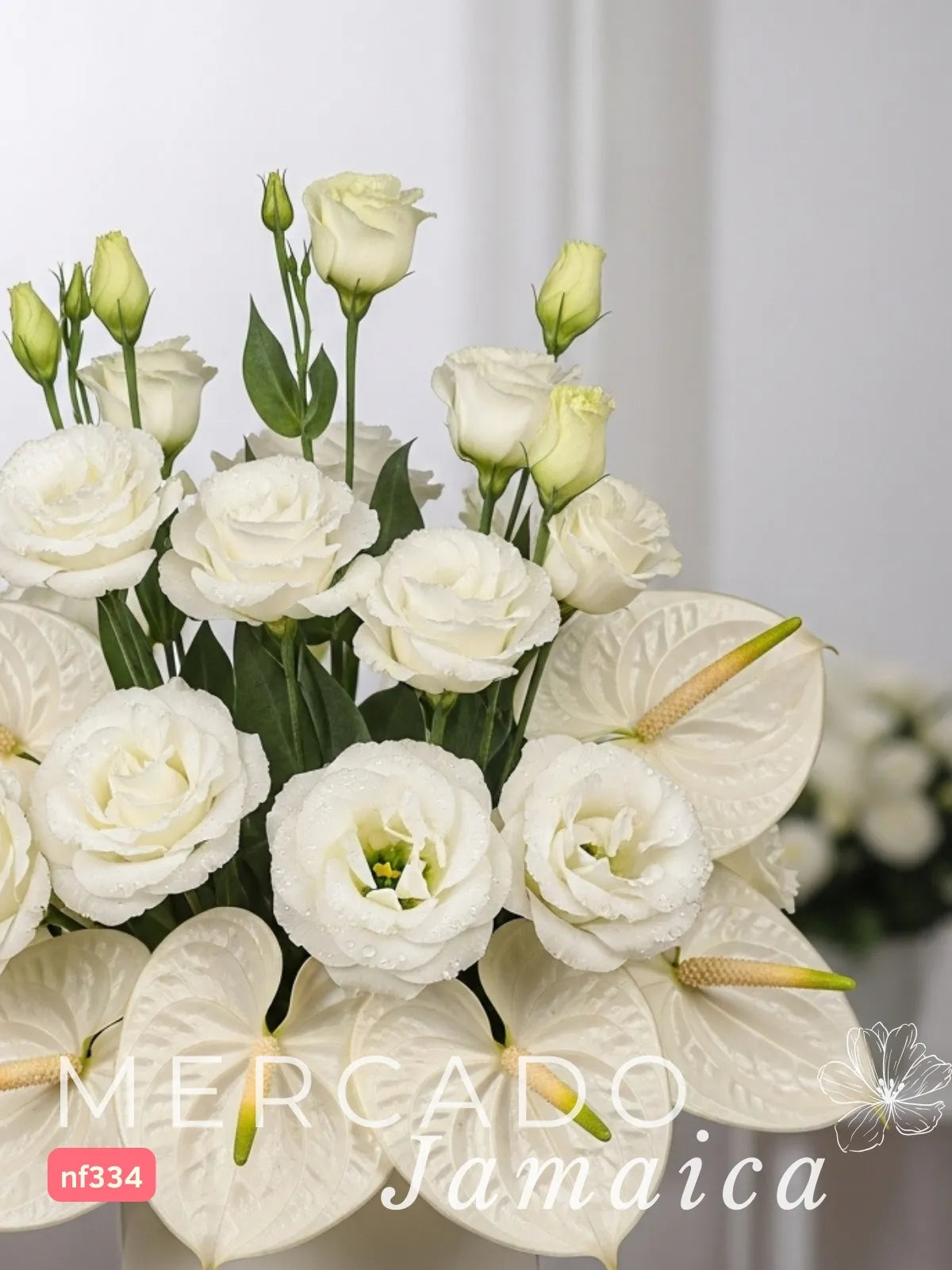Un arreglo floral que fusiona lo exótico y lo delicado con la majestuosa belleza de siete anturios y la elegancia de un bounche de lisianthus blancos. Esta combinación crea un contraste visual único y armonioso. Presentado en un florero de cerámica tipo bowl, este diseño es perfecto para celebrar cualquier ocasión especial con un toque de audacia y sofisticación.