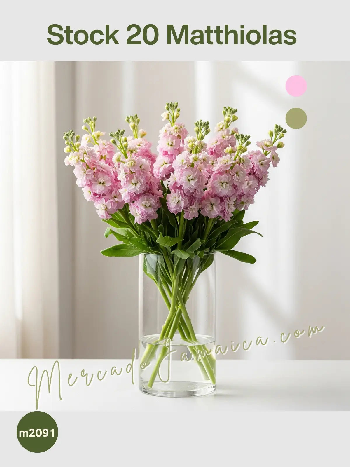 En Mercado Jamaica, nos comprometemos a ofrecerte solo las flores más frescas y los arreglos más cuidadosamente elaborados. Cada Matthiola es seleccionada a mano y preparada con esmero para asegurar que tu bouquet llegue en perfectas condiciones y mantenga su belleza y fragancia por más tiempo.