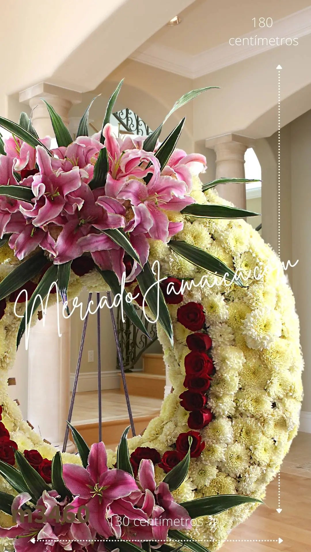 La Corona Fúnebre Cielo y Amor representa una unión celestial del amor y el recuerdo. Con las prístinas Flores Polar Blancas y las pasionales Rosas Rojas, cada detalle evoca sentimientos profundos y conmemorativos.