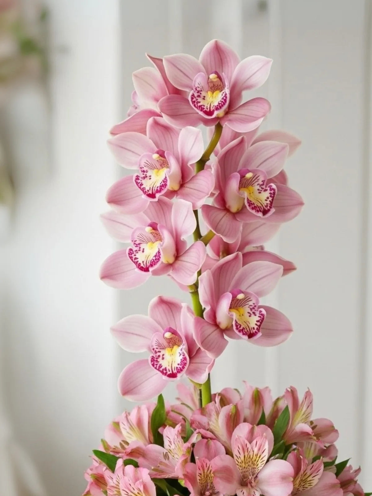 1 Orquídea cymbidium color rosa . flor de corte nacional
