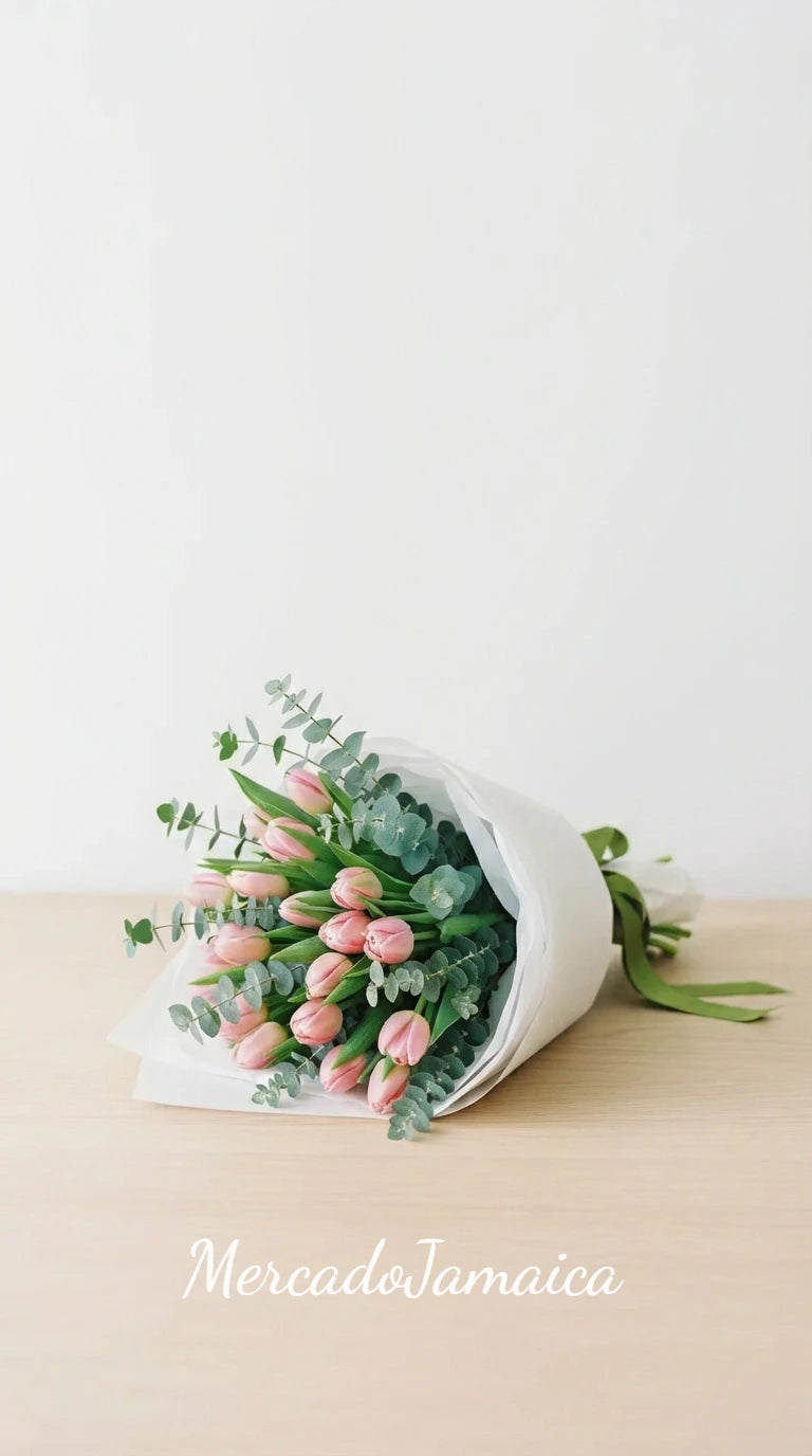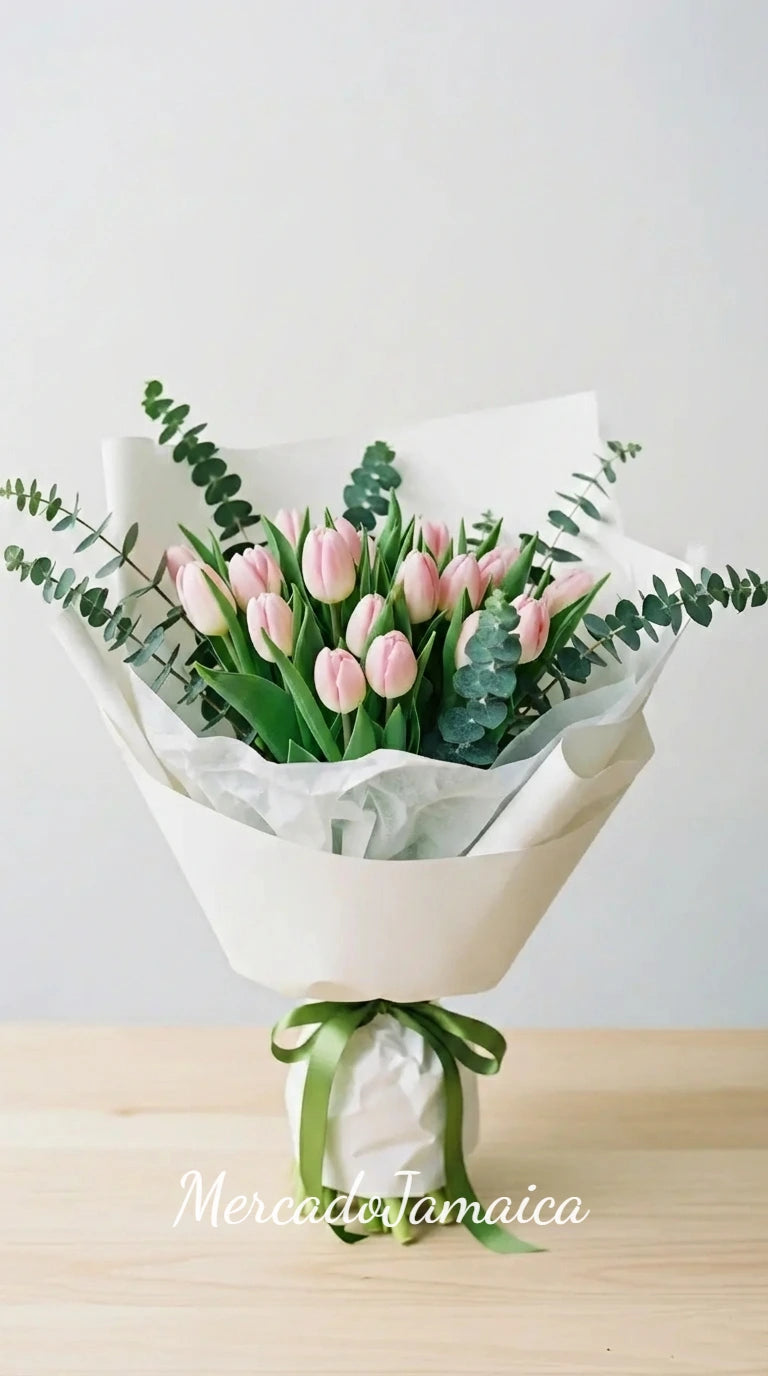 Los tulipanes rosa son símbolos de cuidado y afecto, y este ramo es ideal para mostrar aprecio, celebrar lazos especiales o simplemente llevar un trozo de la primavera a cualquier entorno.