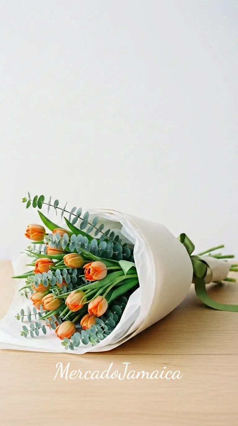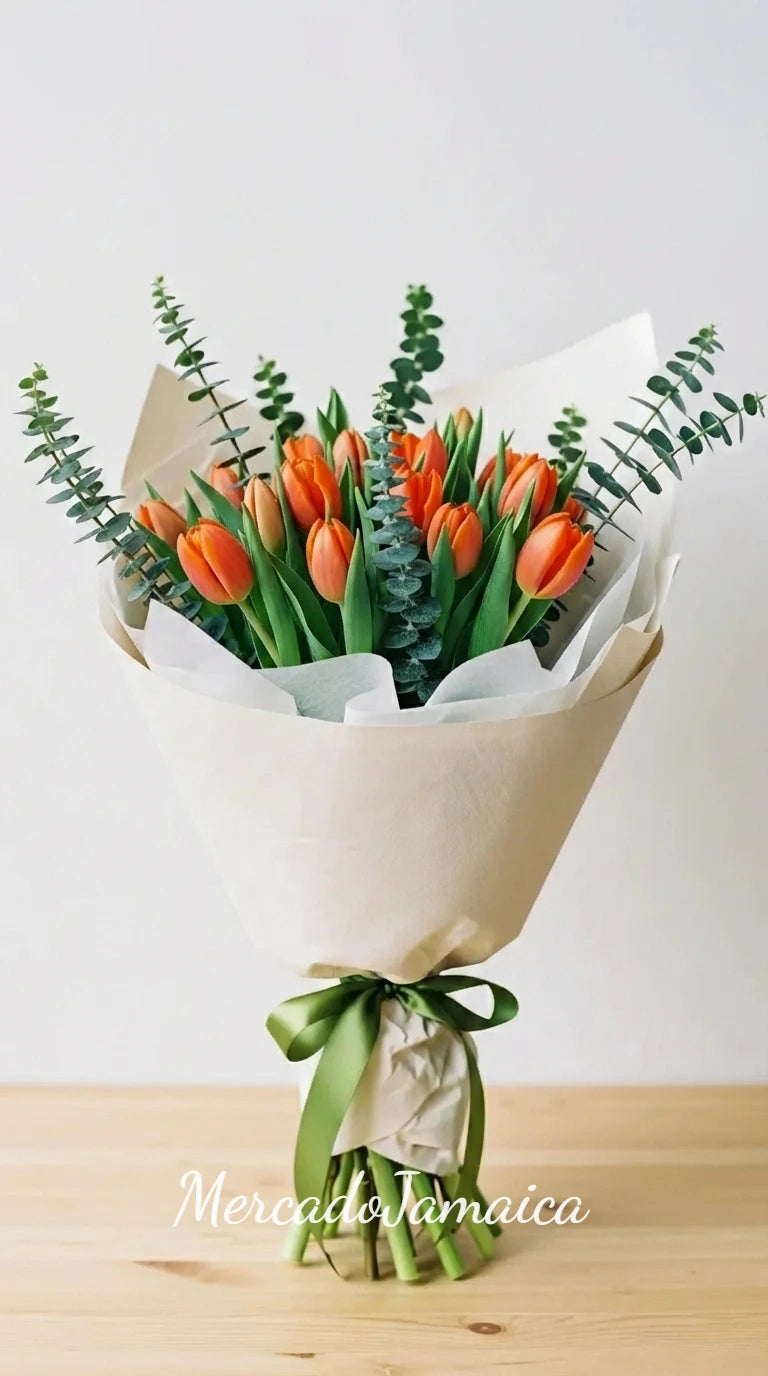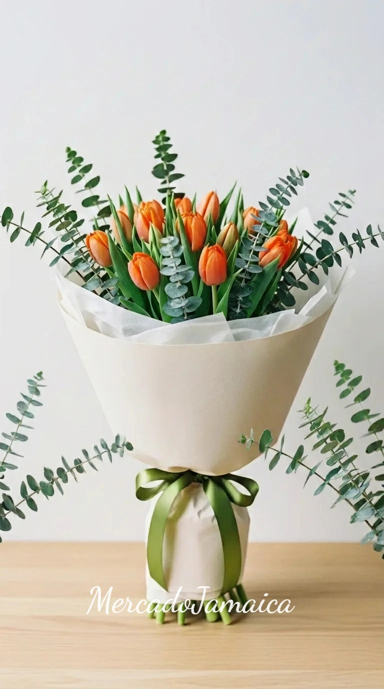 Los tulipanes naranja son una maravilla natural que evocan alegría y entusiasmo. Sus pétalos suaves y elegantes se abren en una forma única y delicada, mientras que su color vibrante ilumina cualquier espacio. Envueltos en papel decorativo y un lazo satinado brillante, son el regalo perfecto para transmitir energía y optimismo.