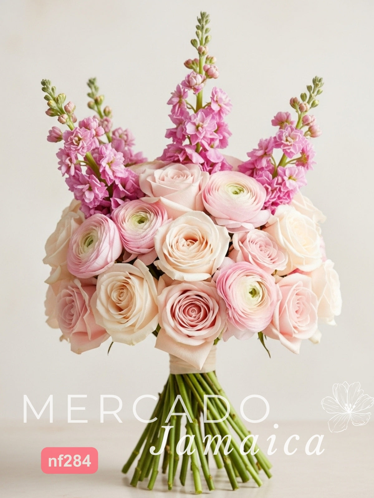 Un diseño que es un sueño hecho realidad para los amantes del color rosa. 24 rosas, 10 delicados ranúnculos y el dulce perfume de las matthiolas se unen en una composición abundante y llena de texturas. Presentado en un florero esférico, es el regalo perfecto para un gesto de amor grandioso.