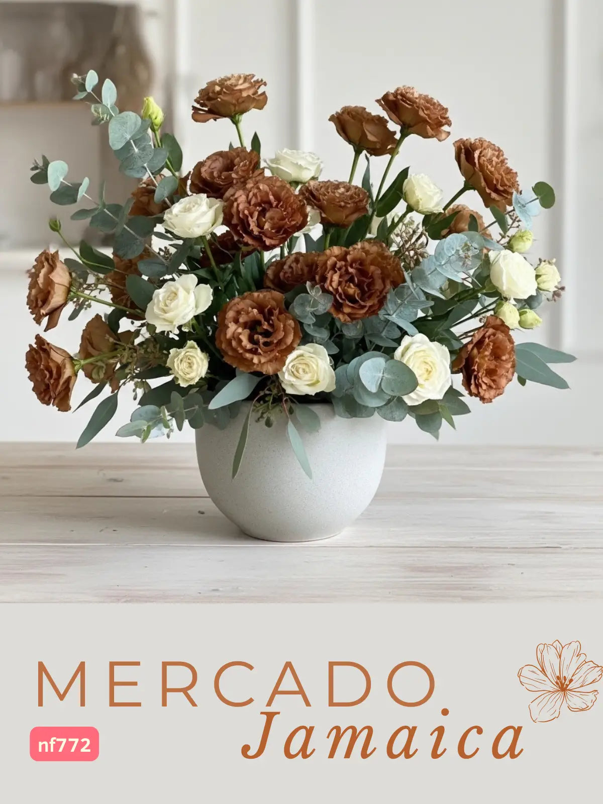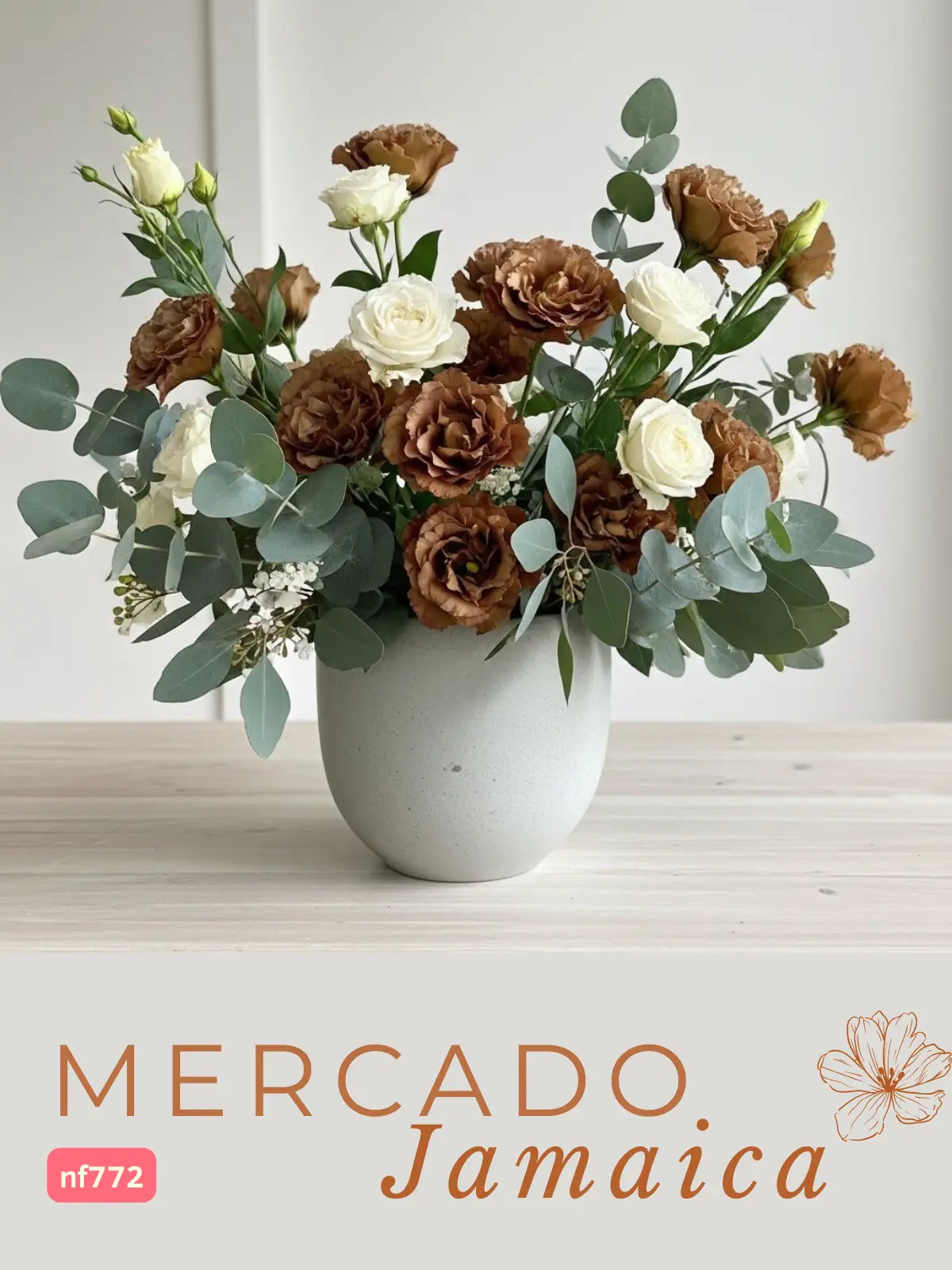 Este arreglo es una combinación de calidez y elegancia. El color intenso y profundo del lisianthus "chocolate" le da un toque sofisticado y terroso, evocando sentimientos de confort y lujo.